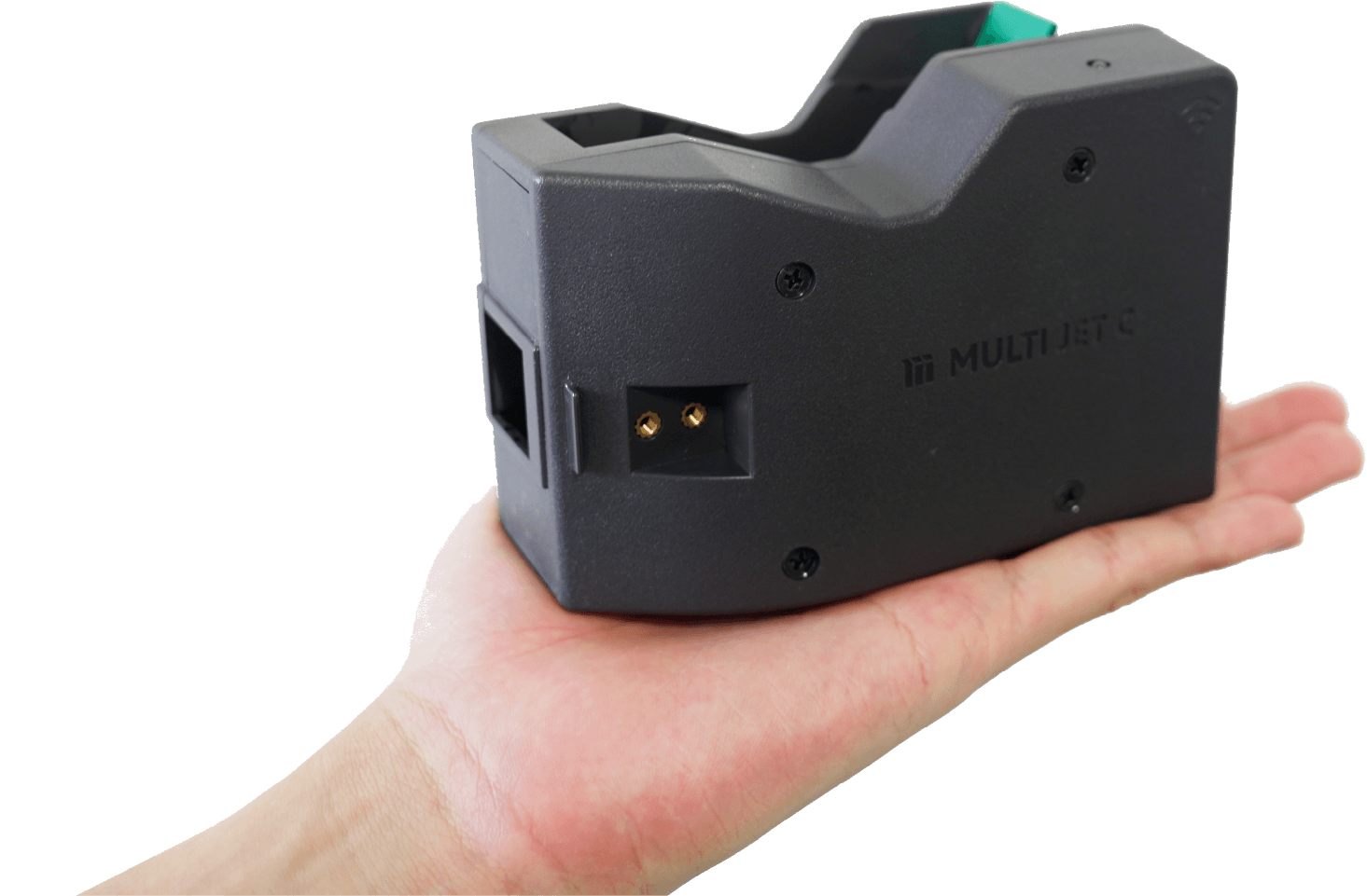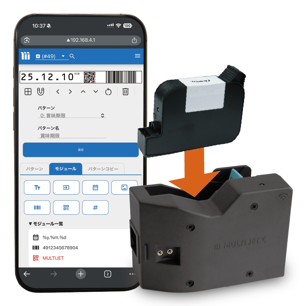 コントロール基盤と印字ヘッドを統合し、操作画面をなくすことで、コンパクトさを追求。手のひらサイズを実現しました。