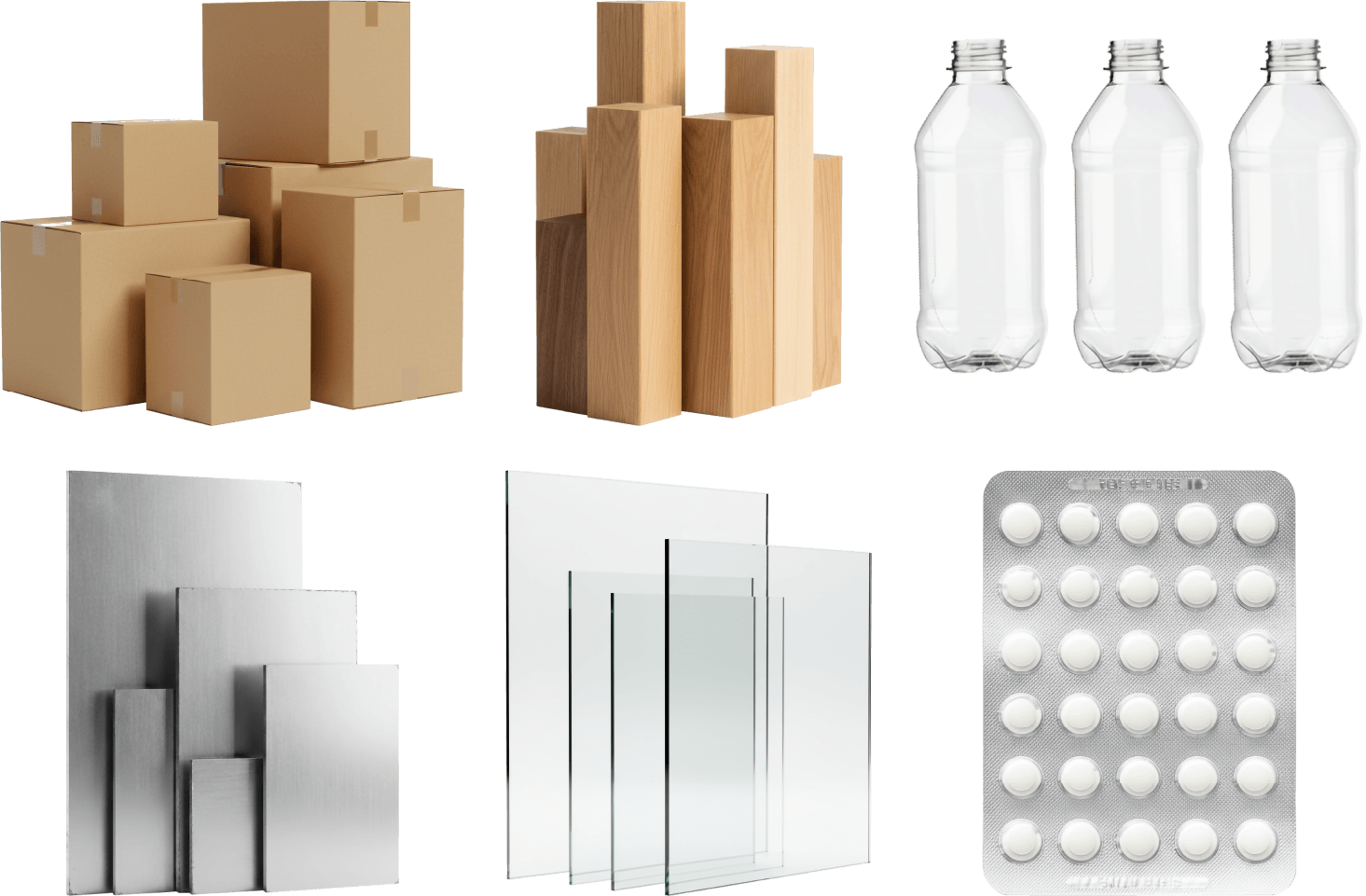 段ボールや木材などのポーラス素材から、PET、ガラス、アルミニウム、ブリスターホイルなど様々な対象に印字可能です。
